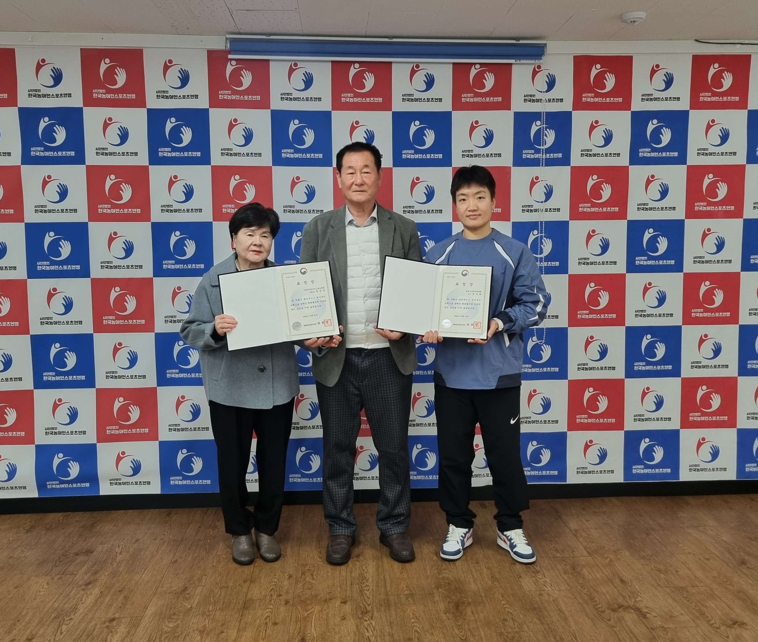 (사)한국농아인스포츠연맹 박정자 부회장님과 세종시장애인체육회 정숙화 선수가 문화체육관광부 장관 표창장을 수상했습니다.